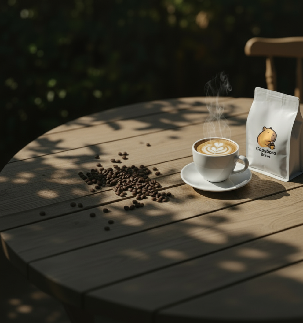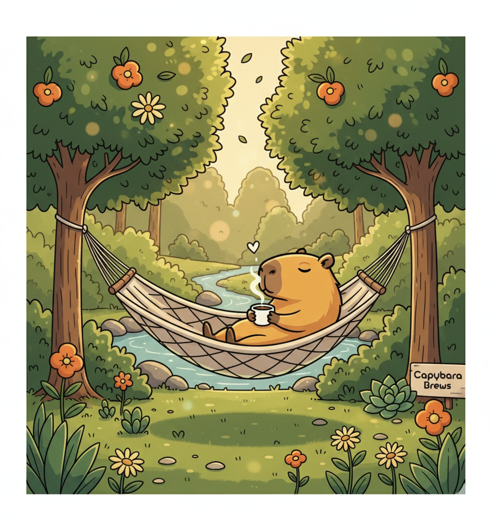 Capybara Brews whispers its warm invitation, soothing your senses and delivering calm to your life with every rich sip